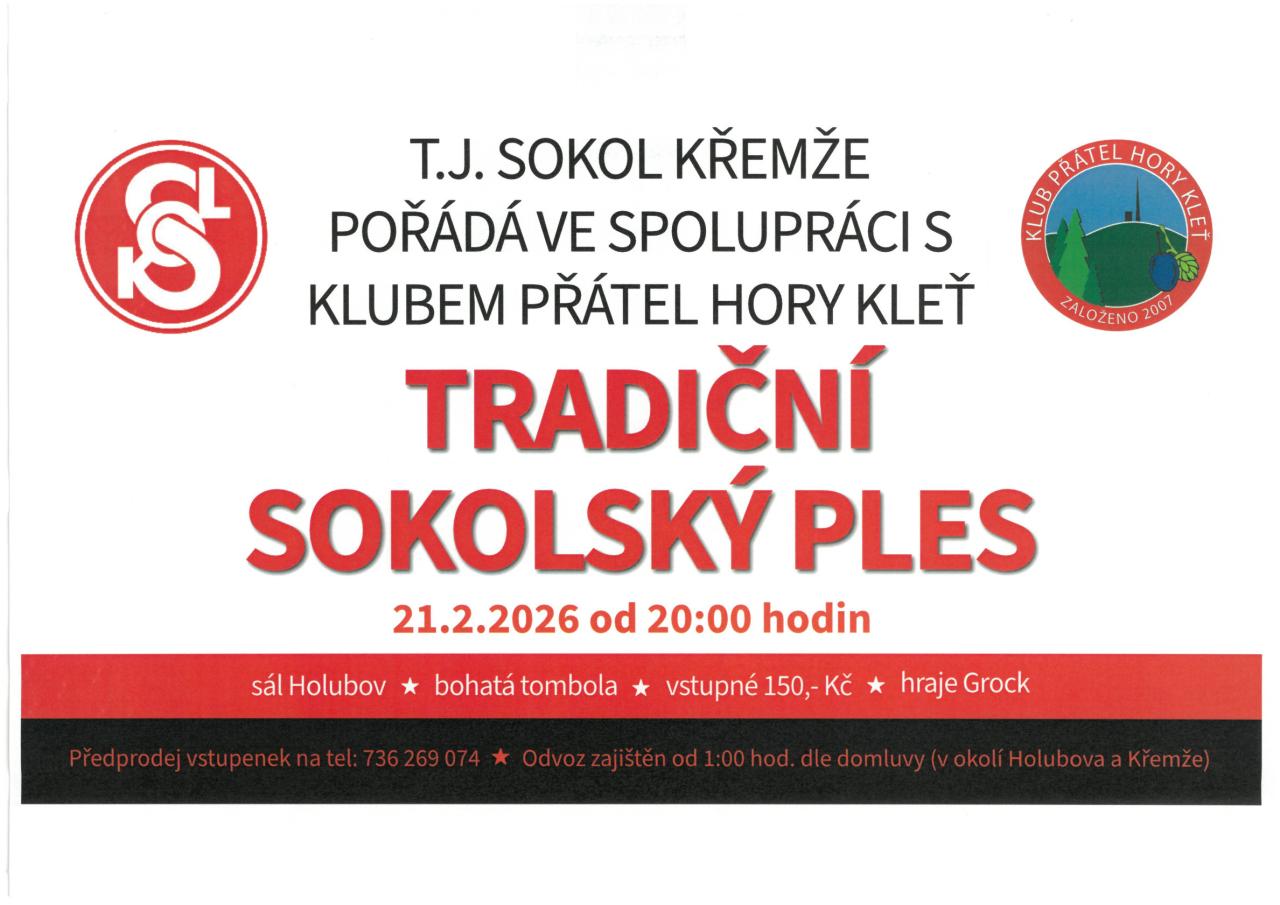 T.J.Sokol s Klubem přátel hory Kleť srdečně zvou na tradiční sokolský ples do sálu v Holubově.